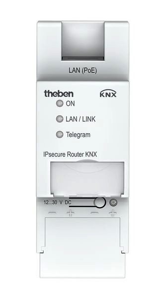 Router/Schnittstelle/Linienkoppler IP und KNX, Zum Datenaustausch zwischen KNX und IP-Netzwerken, Unterstützung von KNX IP Secure, Entspricht den Vorgaben des KNXnet/IPStandards, Komplette Filtertabelle für alle Hauptgruppen (0…31), Anzeige von Spannungsausfällen am Bus (KNX IP Service), Unicast: Bis zu 10 Geräte können via Unicast kommunizieren, Tunneling: 5 Tunnelingserver verfügbar (Visualisierung, App…), Firmware-Update möglich (Theben IP Tool Software), Spannungsversorgung: 12–30 V DC/PoE - IEEE 802.3af class 1
