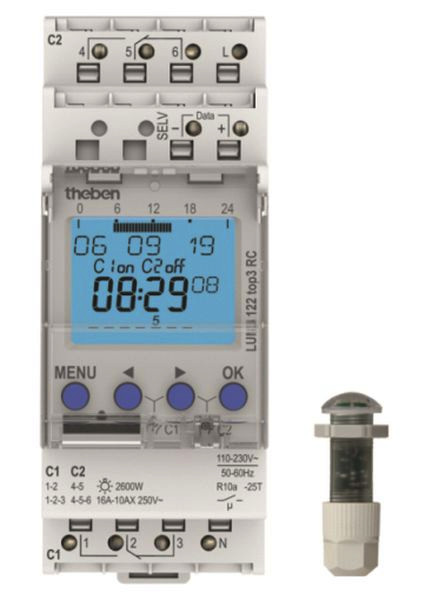 | Kurzbeschreibung | Dämmerungsschalter mit Zeitschaltuhr, Einbau-Lichtsensor, 2 Kanäle, RC-fähig |
