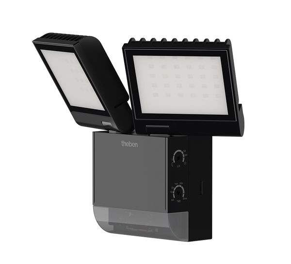 LED-Strahler für Wandmontage mit Bewegungsmelder, schwarz, 4000 K, 2x900 lm, 2 LED-Strahler mit insgesamt 17 W, Erfassungsbereich 180° 10 m, zusätzlicher Schaltausgang Licht, vernetzbar über Draht, Nachfolger zu 1020924, theLeda S20 BK