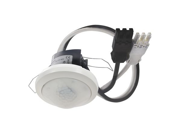 Korridormelder (PIR), mit Kabel und WAGO WINSTA Steckern, Erfassungsbereich 30 x 5 m, 1 x Licht, Kabellänge 0, 9 m, Erfassungsbereich umschaltbar auf 15 x 5 m (für gehende Personen), Montagehöhe bis zu 6 m, Schaltausgang Licht: 2300 W, Nachlaufzeit: 10 s-60 min, Nachlaufzeit 10 s-120 min, Einschaltverzögerung 0-10 min, Impuls-Funktion, Betrieb als Voll- oder Halbautomat umschaltbar, Teach-in-, Treppenlicht-Funktion, fernbedienbar, Lichtmessung 10-3000 Lux, einfacher Abgleich der Lichtmessung, Empfindlichkeit einstellbar