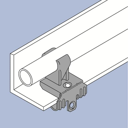 E-Klips® Federstahlbefestigungssysteme aus verzinktem Stahl. Diese bieten stabile, flexible und einfach zu installierende Befestitungslösungen für eine breite Palette von Anwendungen. Ohne Bohrunng oder die Verwendung zusätzlicher Schrauben. EH814-P28 Befestigung für Leitungsschutz.