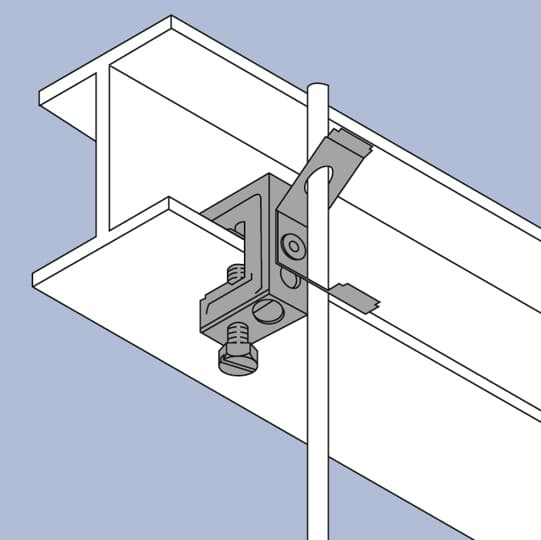 | Kurzbeschreibung | Trägerschraubklammer waagrecht bis 18mm + Stangenbefest. für M8/8 Federhaltung |