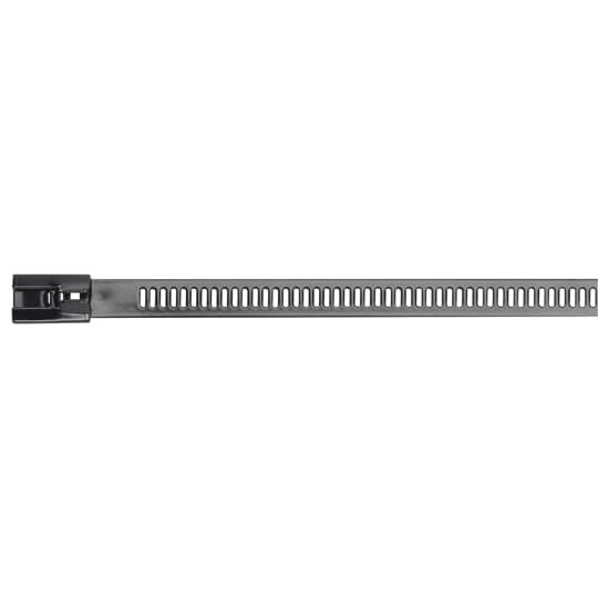 YLD-12-915-BC Ty-Met 316 Edelstahlkabelbinder, Schnellbinder mit Schlitzraster,915x12mm, beschichtet, Polyester, schwarz, 150°C, 445N, UV-beständig, Dicke 0.41mm