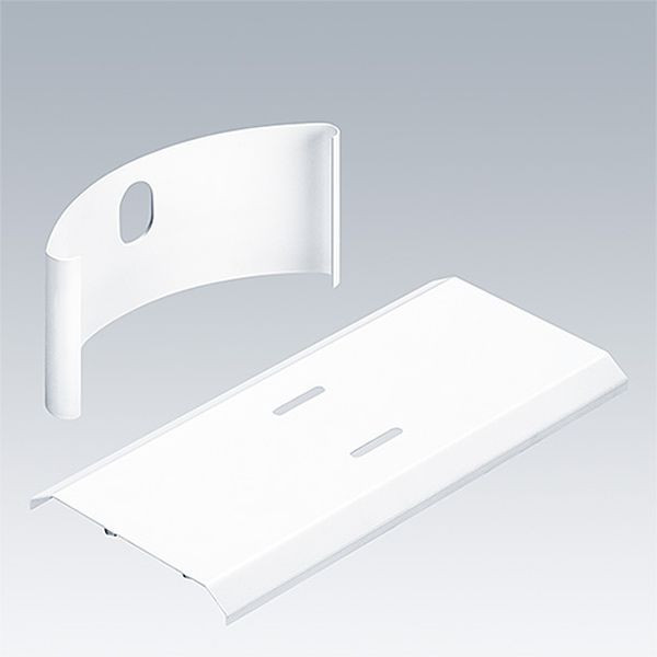 Bausatz für die mechnische Verbindung zwischen einer Standard IQ Wave abgependelt Leuchte und einer Sensor IQ Wave abgependelt Leuchte. Anschlussplatte: Stahl, weiß (ähnlich RAL9016) lackiert. Abdeckung: Polycarbonat (PC), weiß (ähnlich RAL9016).