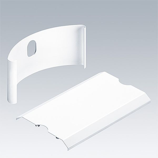 Bausatz für die mechnische Verbindung zwischen einer Standard IQ Wave Anbauversion Leuchte und einer Sensor IQ Wave Anbauversion Leuchte. Anschlussplatte: Stahl, weiß (ähnlich RAL9016) lackiert. Abdeckung: Polycarbonat (PC), weiß (ähnlich RAL9016).