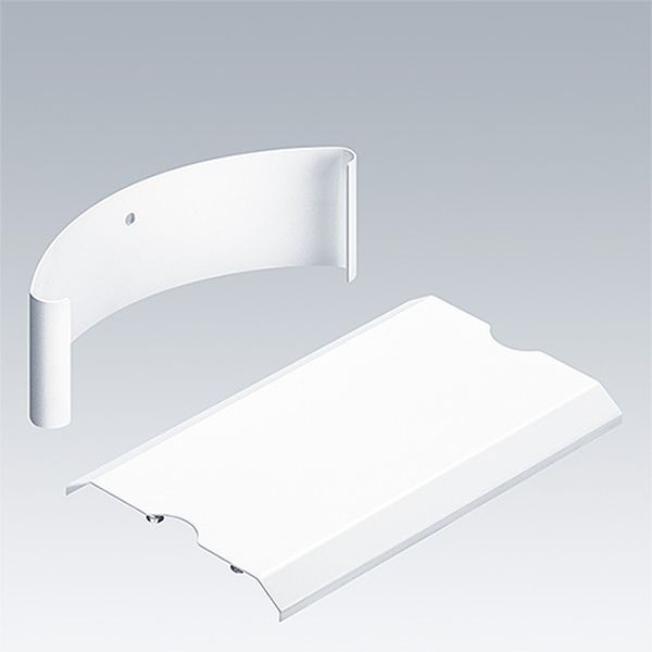 Bausatz für die mechnische Verbindung zwischen einer Standard IQ Wave Anbauversion Leuchte und einer Notlichtversion IQ Wave Anbauversion Leuchte. Anschlussplatte: Stahl, weiß (ähnlich RAL9016) lackiert. Abdeckung: Polycarbonat (PC), weiß (ähnlich RAL9016).
