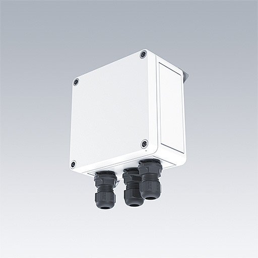 Externer Gerätekasten mit einem 230V+DALI-Eingang und zwei 230V+DALI-Ausgängen, um Areaflood Pro mit demselben Kabel zu verbinden.