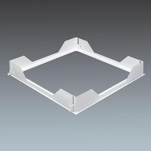 Einbaurahmen für eine 622 x 622mm Omega Pro 2 Leuchte in eine Gipskartondecke mit einer Stärke von 12-50 mm. Der Einbaurahmen ist aus punktgeschweisstem Stahlblech geformt und wird mit 4 höhenverstellbaren Nivellier-Elementen geliefert. Der Rahmen ist weiss pulverbeschichtet, ähnlich RAL 9016. Um die Leuchte sachgemäß in den Montagerahmen einzulegen (inklusive CKIT / CKIT+) muss in der Decke ein lichter Raum von 200 mm gegeben sein, weiters sollte der Abstand zur Wand mindestens 150 mm betragen. Abmessungen: 655 x 655 x 91 mm Ceiling cutout: 640 x 640mm. Gewicht: 1,97 kg