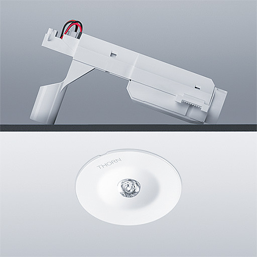 Leistungsstarke LED-Einbau-Notlichtleuchte. Leuchte für zentrale Notlichtversorgung zur Einzelüberwachung der Leuchte über DALI (DALI-2 zertifiziert), einstellbarer Notlichtlevel. Optik:. Leuchte in Dauerschaltung. Gehäuse: Aluminiumdruckguss, weiß (ähnlich RAL9016) pulverbeschichtet. Vorschaltgerätebox zum Deckeneinbau:. IP20_IP40, Decken-Einbauleuchte für 68 mm Deckenausschnitt und Deckenstärken von 1-25 mm. Linse: Polycarbonat (PC). Leuchte kann rasch ohne Werkzeuge montiert und gewartet werden. Stromanschluss (230 V) über max. 2,5mm ²-Kabel, Durchgangsverdrahtung möglich. Wärmeableiter für optimales Wärmemanagement. Dauerschaltung: -30 °C bis +30 °C, Bereitschaftsschaltung: -30 °C bis +35 °C, Spannungsversorgung: 220-240 V AC (+/- 10 %) 50-60 Hz, 176-280 V DC Einbaumontage möglich in Betoneingießgehäuse (separat zu bestellen). Komplett inklusive LEDs. Deckenausschnitt Durchmesser 68 mm in Decken mit einer Stärke von 1-25 mm. Leuchten Leistung: 3,7 W Abmessungen: Durchmesser 85 x 2 mm Gewicht: 0,45 kg
