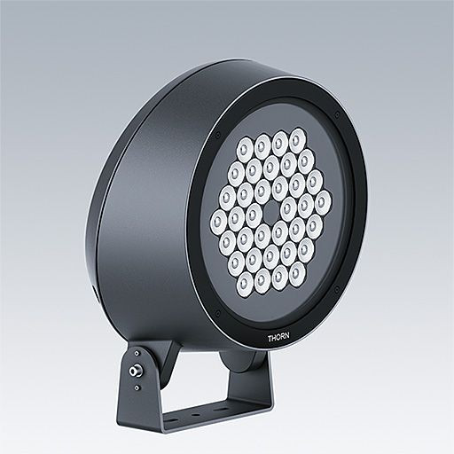 Ein Maxi-Architektur-Montagebefestigung LED Fluter, mit 36 LEDs, betrieben mit 1050 mA, Lichtverteilung: schmal. LED-Treiber: DALI-2 dimmbar. Schutzklasse II, IP66, IK08. Gehäuse: Aluminium (EN AC-44300)Druckguss, THORN DUNKELGRAU, strukturiert, (ähnlich DB 703 / AKZO 900) Kompatibel für Küstengebiete. pulverbeschichtet, texturiert. Glas: vergütet, 5 mm stark. Dichtung: EPDM. Schrauben: Geomet. Ausgestattet mit 10-kV / 10-kA-Überspannungsschutz. Komplett inklusive LEDs mit 2200-4000K (ausgewogenes Weiß) Abmessungen: Durchmesser 397 x 206 mm Leuchten Leistung: 118 W Leuchten Lichtstrom: 11427 lm Leuchten Lichtausbeute: 97 lm/W Gewicht: 13,2 kg