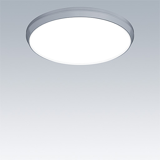 Dekorative runde Leuchte. Gehäuse: Midi. Lichtverteilung:. Flache Komponente für indirekte Wand- und Deckenbeleuchtung. Vorschaltgerät: Elektronisches, DALI dimmbar. Ästhetische Verkleidung der Leuchte aus Polycarbonat (PC), silber. Diffusor: Polycarbonat (PC), opal. Schutzklasse II, IP54. Inklusive LED-Modul mit 4000K Abmessungen: Durchmesser 397 x 69 mm Leuchten Leistung: 17,6 W Leuchten Lichtstrom: 2500 lm Leuchten Lichtausbeute: 142 lm/W Gewicht: 2,14 kg