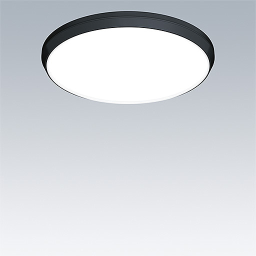 Dekorative runde Leuchte. Gehäuse: Midi. Lichtverteilung:. Flache Komponente für indirekte Wand- und Deckenbeleuchtung. Vorschaltgerät: Elektronisches, DALI dimmbar. Ästhetische Verkleidung der Leuchte aus Polycarbonat (PC), schwarz. Diffusor: Polycarbonat (PC), opal. Schutzklasse II, IP54. Inklusive LED-Modul mit 4000K Abmessungen: Durchmesser 397 x 69 mm Leuchten Leistung: 24,6 W Leuchten Lichtstrom: 3500 lm Leuchten Lichtausbeute: 142 lm/W Gewicht: 2,14 kg