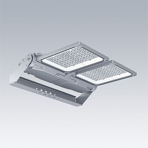Kompakter, leichter LED-Universalflutlichtstrahler für flächige Beleuchtung. Baugröße: mittel x 2. Vorschaltgerät: LED-Konverter für 192 LEDs betrieben bei 500mA. Lichtverteilung: Asymmetrisch 40°. IP66, IK08, Schutzklasse II. Gehäuse: Druckguss aus Aluminium (EN AC-44300), pulverbeschichtet in THORN HELLGRAU, strukturiert (ähnlich RAL 9006 / AKZO 150).. Abdeckung: Glas, gehärtet, 4mm stark. Umlegbarer Befestigungsbügel enthalten. Inklusive LED-Modul mit 4000K. Integrierter 6kV Überspannungsschutz standardmäßig inkludiert, höherer Schutz 10kV wählbar (in der Beschreibung als "SP" bezeichnet). Abmessungen: 630 x 722 x 116 mm Leuchten Leistung: 276,1 W Leuchten Lichtstrom: 47689 lm Leuchten Lichtausbeute: 173 lm/W Gewicht: 23,36 kg Windangriffsfläche: 0.12 m²