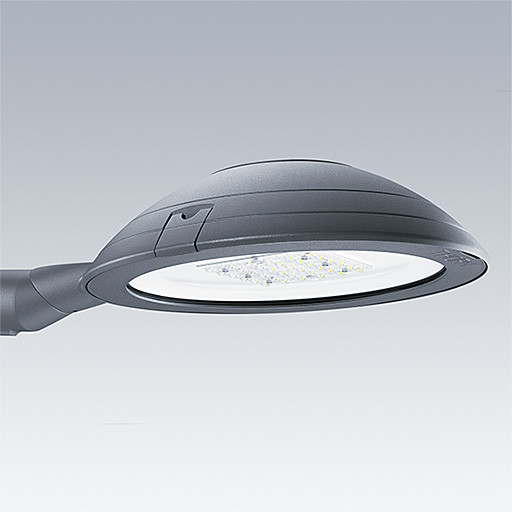 Eine intelligente LED-Stadtleuchte, Baugröße: Mini, mit 36 LEDs, betrieben mit 500mA, Optik: Anliegerstraße, Komfort, und Kuppel aus Aluminiumdruckguss (EN AC 47100 + CAT), anthrazit (ähnlich RAL7043). Schutzklasse II, IP66, IK10. Gehäuse: AluminiumDruckguss (EN AC 47100 + CAT), mit Korrosionsschutz, THORN DUNKELGRAU, strukturiert, (ähnlich DB 703 / AKZO 900) pulverbeschichtet. Befestigung: AluminiumDruckguss (EN AC-47100 + CAT), mit Korrosionsschutz, THORN DUNKELGRAU, strukturiert, (ähnlich DB 703 / AKZO 900) pulverbeschichtet. Abdeckung: Glas, 6 mm, flach, gehärtet. Schrauben und Werkzeuge für den Verschluss: Edelstahl. Vorverdrahtet mit 6-m-Kabel für Netzanschluss und DALI-Steuerung. Mastansatzmontage an Durchmesser 60-mm-Mast, Neigung 0°, einstellbar zwischen -15° und +10°. Ausgestattet mit integrierter Leistungsreduzierung (LRT) auf 50% Lichtstrom über 230V Steuerphase Inklusive LED-Modul mit 4000K Abmessungen: Durchmesser 459 x 171 mm Leuchten Leistung: 55 W Leuchten Lichtstrom: 8520 lm Leuchten Lichtausbeute: 155 lm/W Gewicht: 10 kg Windangriffsfläche: 0.038 m²