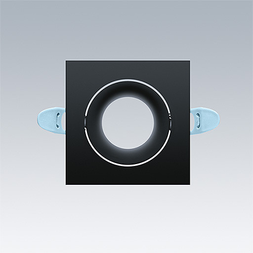Einstellbare, quadratischw Verkleidung in Mattschwarz für LILY Lichtmodul für Downlight. Material: Aluminiumdruckguss. Abmessungen: 82 x 82 x 25 mm, Gewicht: 0,09 kg.
