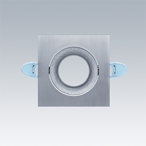 Einstellbare, quadratischw Verkleidung in Mattsilber für LILY Lichtmodul für Downlight. Material: Aluminiumdruckguss. Abmessungen: 82 x 82 x 25 mm, Gewicht: 0,09 kg.
