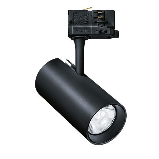 LED-Strahler für definierte Akzentbeleuchtung. Abstrahlwinkel 38°, 24°-Wechselreflektor liegt separat bei, für Anwendungen im Einzelhandel und in Ausstellungen. Gesamtlichtstrom: 2100 lm Leuchten Leistung: 23 W. Leuchten Lichtausbeute: 92 lm/W. Lebensdauer: 50.000 h bei L70. Farbwiedergabe Ra > 90, Farbtemperatur 3000 K, Farborttoleranz (initial MacAdam): 3. Mit 3-Phasen Universaladapter. Strahler bis 350° drehbar und bis 90° neigbar. Gehäuse mit integriertem Konverter aus Aluminiumdruckguss, schwarz (RAL9005). Abmessungen: 140 x 69 x 178 mm, Gewicht: 0,6 kg.