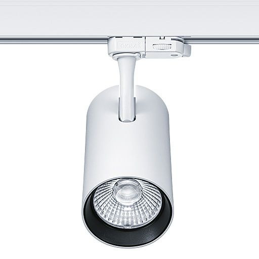 LED-Strahler für definierte Akzentbeleuchtung. Abstrahlwinkel 38°, 24°-Wechselreflektor liegt separat bei, für Anwendungen im Einzelhandel und in Ausstellungen. Gesamtlichtstrom: 3200 lm Leuchten Leistung: 34 W. Leuchten Lichtausbeute: 94 lm/W. Lebensdauer: 50.000 h bei L70. Farbwiedergabe Ra > 90, Farbtemperatur 4000 K, Farborttoleranz (initial MacAdam): 3. Mit 3-Phasen Universaladapter. Strahler bis 350° drehbar und bis 90° neigbar. Gehäuse mit integriertem Konverter aus Aluminiumdruckguss, weiß (RAL 9016). Abmessungen: 146 x 79 x 179 mm, Gewicht: 0,7 kg.