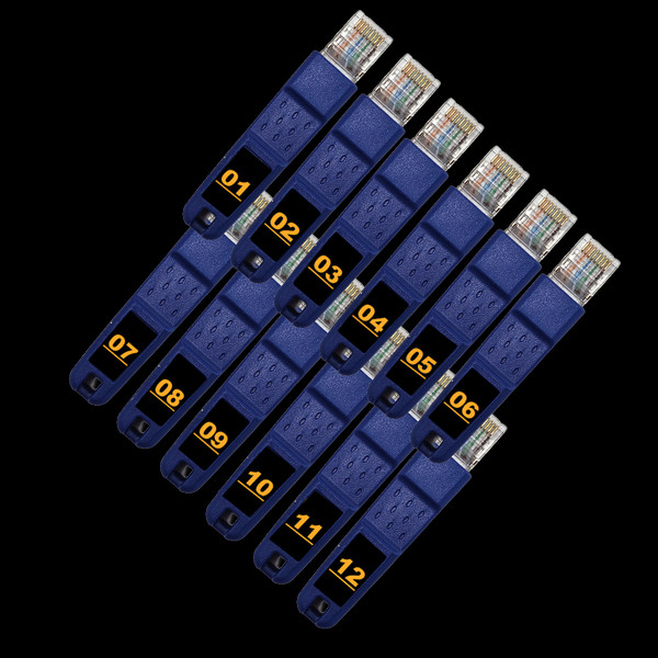 Remoteadapter-Kit Nr. 1-12 mit RJ45-Steckeranschluss für Verdrahtungs- und Qualifizierungstests, die Nummer des angeschlossenen Remoteadapters wird auf dem Display des Gerätes angezeigt. Mit dem dazugehörigen Tester prüft der Remoteadapter auf Kurzschluss, Pin-Vertauschung, Split-Pair, offene/gebrochene Ader, Fehlerort. Passend für die TREND Networks Tester der Modellreihe SignalTEK QT, VDV II und PoE Pro.
