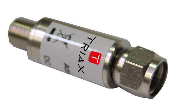 Festdämpfungsglied zum absenken zu hoher Eingangspegel, 6 dB Dämpfung, F-Schraubstecker / F-Buchse, Frequenzbereich 5-2400 MHz, mit DC Durchlass
