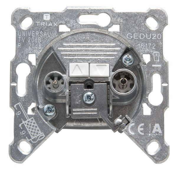 2-Loch Durchgangsdose mit durchgängigen Frequenzbändern für und TV/RFHauptmerkmale: geeignet für BK- und Sat-ZF-Hausverteilungen (Kein Gleichspannungsdurchlass), 2 gleichberechtigte Ausgänge für diverse Endgeräte, rückkanaltauglich, Durchgangsdose für Baumstrukturen 20 dB