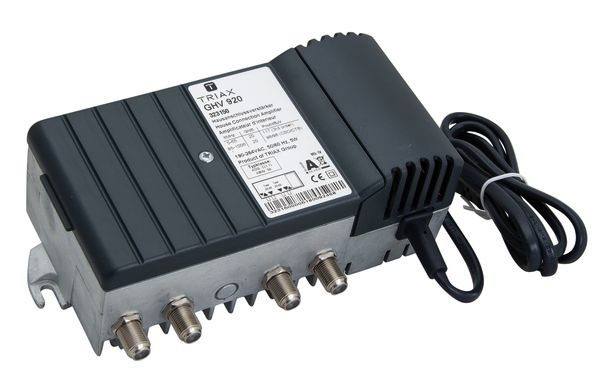 | Kurzbeschreibung | Multimediafähiger BK-Verstärker, Verstärkung vorwärts 20 dB, rückwärts 20 dB, max. Ausgangspegel 98/100 dBµV (42 ch. 0/7 dB slope) - |