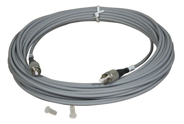Optische Kabel, fertig konfektioniert. 15 m Kabellänge, geringe Dämpfung von 0,3 dB pro km, max. Biegeradius: 5 mm, UV-bestandig, fur Ausenverlegung geeignet, stahlarmierter Mantel als Schutz gegen mechanischen Druck/Zug, Kunststoff-Mantel grau LSHZ (rauchhemmend und halogenfrei), beidseitig konfektioniert mit Steckern FC/PC, geringe Brandlast im Vergleich zu Koax-Kabel, keine Brandauslosung durch Blitzschlag moglich, keine Beeinflussung durch elektrische oder elektromagnetische Felder, keine Erdung notwendig, wesentlich weniger Platzbedarf als Koaxialkabel, Monomode-Faser 9/125.