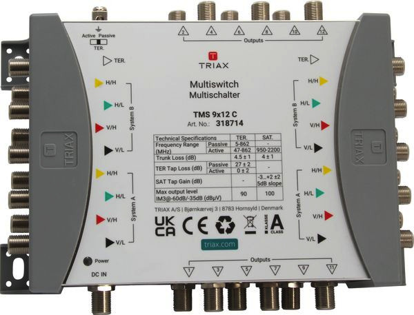 | Kurzbeschreibung | Kaskaden-Multischalter 8 SAT + 1 terr. Eingang, 12-fach, ext. Netzteil, terr. aktiv/passiv |