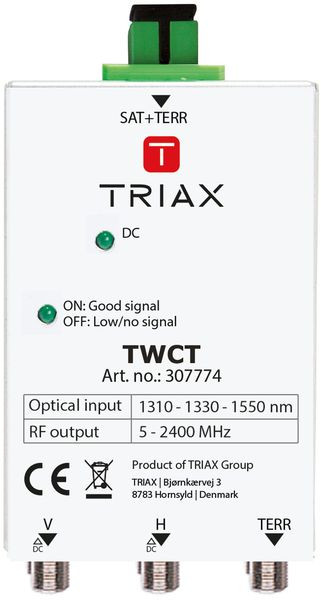 Der Wideband Rückumsetzer TWCT wandelt das vom TSOT und TTOT kommende optische Signal, auf ein elektrisches SAT-Wideband Signal und terrestrisches Signal zurück.