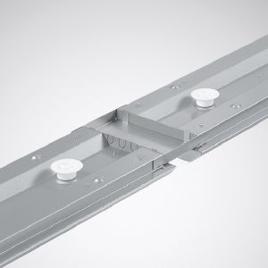 Leuchtenkupplung ohne Verdrahtung Zur schutzartgerechten Leuchtenverbindung und für definierten Abstand (60 mm) zwischen den Leuchten bei durchgehenden Lichtbändern. Farbe silbergrau. Farbe silbergrau (ähnlich RAL 9006).