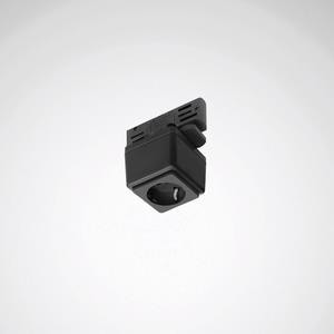Adapter mit Schutzkontakt-Steckdose für 3-Phasen-Stromschienensystem mit/ohne DALI-Ausstattung. Farbe schwarz (ähnlich RAL 9005). Maße (L x B x H): 65 mm x 65 mm x 55 mm.