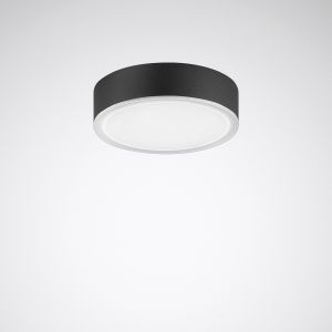 Rundes LED-Anbau-Downlight, Aufbauhöhe 60 mm. Geeignet zur Anwendung in HACCP, IFS und/oder BRC Global Standard Food zertifizierten Unternehmen. Für die Wand- und Deckenmontage. Mit Primärreflektor und hocheffizienter Mikroprismatik CDP. Mit symmetrisch begrenzt breit strahlender Lichtstärkeverteilung. Ausstrahlungswinkel 91°. Blendungsbewertung nach UGR-Einstufung (EN 12464-1) < 19. UGR-Einstufung nach Tabellenverfahren (EN 12464-1) mit Reflexionswerten 80/60/30. Harmonische Lichtwirkung durch gleichmäßig ausgeleuchteten Lichtaustritt. Leuchtenlichtstrom und Lichtfarbe fest eingestellt. Bemessungslichtstrom 1100 lm, Bemessungsleistung 9 W, maximale Leuchten-Lichtausbeute 122 lm/W. Lichtfarbe warmweiß, ähnlichste Farbtemperatur (CCT) 3000 K, allgemeiner Farbwiedergabeindex (CRI) Ra > 80. Farborttoleranz (initial MacAdam) = 3 SDCM. Mittlere Bemessungslebensdauer L80 (tq 25 °C) = 70.000 h. Die Lichtquelle ist entsprechend der Ökodesign-Anforderungen (VO (EU) 2019/2020) austauschbar. Flimmern: Pst LM = 1,0 bei Volllast. Stroboskop-Effekt: SVM = 0,4 bei Volllast. Leuchtenkörper aus Aluminiumdruckguss. Oberfläche anthrazit beschichtet (ähnlich DB 703). Außenmaße Deckenring Ø 234 mm, Leuchtenhöhe 60 mm. Schutzklasse (EN 61140): I, Schutzart (DIN EN 60529): IP40, Stoßfestigkeitsgrad nach IEC 62262: IK06, Prüftemperatur Glühdrahttest gemäß IEC 60695-2-11: 650 °C. Zulässige Umgebungstemperatur (ta): -20 °C bis 25 °C. Gewicht: 1,7 kg. Mit Anschlussklemme bis 2,5 mm, Zugentlastung und Netzweiterleitung. Mit elektronischem Betriebsgerät, schaltbar. Das Betriebsgerät ist entsprechend der Ökodesign-Anforderungen (VO (EU) 2019/2020) austauschbar. Das Produkt erfüllt die grundlegenden Anforderungen der anwendbaren EU-Richtlinien und des Produktsicherheitsgesetzes und trägt die CE-Kennzeichnung. Zusätzlich ist die Leuchte durch eine unabhängige Prüfstelle ENEC-zertifiziert. Leuchte 10 Jahre, Ersatzteile (LED-Modul, Betriebsgerät, optisches System) 15 Jahre nach Rechnungsdatum unter Vorbehalt vertretbarer Änderungen, die dem Fortschritt dienen, verfügbar.