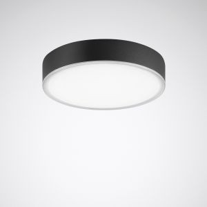 Rundes LED-Anbau-Downlight, Aufbauhöhe 60 mm. Geeignet zur Anwendung in HACCP, IFS und/oder BRC Global Standard Food zertifizierten Unternehmen. Für die Wand- und Deckenmontage. Mit Primärreflektor und hocheffizienter Mikroprismatik CDP. Mit symmetrisch breit strahlender Lichtstärkeverteilung. Ausstrahlungswinkel 95°. UGR-Einstufung nach Tabellenverfahren (EN 12464-1) mit Reflexionswerten 80/60/30. Harmonische Lichtwirkung durch gleichmäßig ausgeleuchteten Lichtaustritt. Leuchtenlichtstrom und Lichtfarbe fest eingestellt. Bemessungslichtstrom 1800 lm, Bemessungsleistung 15 W, maximale Leuchten-Lichtausbeute 120 lm/W. Lichtfarbe neutralweiß, ähnlichste Farbtemperatur (CCT) 4000 K, allgemeiner Farbwiedergabeindex (CRI) Ra > 80. Farborttoleranz (initial MacAdam) = 3 SDCM. Mittlere Bemessungslebensdauer L80 (tq 25 °C) = 70.000 h. Die Lichtquelle ist entsprechend der Ökodesign-Anforderungen (VO (EU) 2019/2020) austauschbar. Flimmern: Pst LM = 1,0 bei Volllast. Stroboskop-Effekt: SVM = 0,4 bei Volllast. Leuchtenkörper aus Aluminiumdruckguss. Oberfläche anthrazit beschichtet (ähnlich DB 703). Außenmaße Deckenring Ø 316 mm, Leuchtenhöhe 60 mm. Schutzklasse (EN 61140): I, Schutzart (DIN EN 60529): IP40, Stoßfestigkeitsgrad nach IEC 62262: IK06, Prüftemperatur Glühdrahttest gemäß IEC 60695-2-11: 650 °C. Zulässige Umgebungstemperatur (ta): -20 °C bis 25 °C. Gewicht: 2,6 kg. Mit Anschlussklemme bis 2,5 mm, Zugentlastung und Netzweiterleitung. Mit elektronischem Betriebsgerät, digital dimmbar (DALI). Betriebsgerät gemäß DALI-2-Standard (EN 62386). Das Betriebsgerät ist entsprechend der Ökodesign-Anforderungen (VO (EU) 2019/2020) austauschbar. Die Leuchte ist Monitoring ready (MOR) und liefert Leuchtendaten zur Überwachung oder vorausschauenden Wartung. Sie ist damit kompatibel zu den TRILUX Monitoring Services. Das Produkt erfüllt die grundlegenden Anforderungen der anwendbaren EU-Richtlinien und des Produktsicherheitsgesetzes und trägt die CE-Kennzeichnung. Zusätzlich ist die Leuchte durch eine unabhängige Prüfstelle ENEC-zertifiziert. Leuchte 10 Jahre, Ersatzteile (LED-Modul, Betriebsgerät, optisches System) 15 Jahre nach Rechnungsdatum unter Vorbehalt vertretbarer Änderungen, die dem Fortschritt dienen, verfügbar.