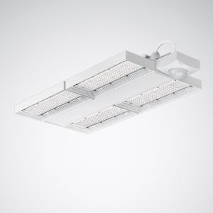 Robuster LED-Hallenstrahler mit DALI-gebundenem PIR-Anwesenheitssensor. Mit integriertem LiveLink Sensor zum Anschluss an ein LiveLink Steuergerät zur tageslichtabhängigen Regelung und Anwesenheitserfassung. Passiv-Infrarot-Anwesenheitssensor, mit 2 hochsensiblen Pyrosensoren, mit einstellbarer Ausschaltverzögerungszeit, wahlweise im Automatik Betrieb (automatisch Ein, automatisch Aus) oder Halbautomatik Betrieb (automatisch Aus, manuell Ein). Spezieller IQ-Modus zur automatischen Anpassung der Nachlaufzeit an die Raumnutzung. Temperaturbereich: -25°C - +55 °C. 2 hochsensible Pyrosensoren sorgen für höchste Erfassungsqualität. Ein Präsenzbereich von max. 18 m im Radius ermöglicht die Detektion kleinster Bewegungen, zulässige Montagehöhe 3 m bis 14 m. Schutzart IP54. Geeignet zur Anwendung in HACCP, IFS und/oder BRC Global Standard Food zertifizierten Unternehmen. Mit begrenzter Oberflächentemperatur, für den Einsatz in feuergefährdeten Räumen gemäß DIN EN 60598-2-24 geeignet. Zur Deckenmontage sowie abgehängten Montage über optionales Zubehör geeignet. Optisches System aus einer PC-Linsenoptik zusammengesetzt. Mit symmetrisch eng strahlender Lichtstärkeverteilung. Leuchtenlichtstrom und Lichtfarbe fest eingestellt. LED-System bestehend aus 4 LED-Modulen, auf Aluminiumträger montiert. Bemessungslichtstrom 26700 lm, Bemessungsleistung 149 W, maximale Leuchten-Lichtausbeute 179 lm/W. Lichtfarbe neutralweiß, ähnlichste Farbtemperatur (CCT) 4000 K, allgemeiner Farbwiedergabeindex (CRI) Ra > 80. Farborttoleranz (initial MacAdam) = 3 SDCM. Mittlere Bemessungslebensdauer L80 (tq 50 °C) = 100.000 h., Mittlere Bemessungslebensdauer L90 (tq 50 °C) = 50.000 h. Flimmern: Pst LM = 1,0 bei Volllast. Stroboskop-Effekt: SVM = 0,4 bei Volllast. Robuster Aluminium-Druckguss-Körper mit integrierten Kühlrippen. Oberfläche weiß beschichtet (ähnlich RAL 9016). Maße (L x B): 649 mm x 342 mm, Leuchtenhöhe 63 mm. Schutzklasse (EN 61140): I, Schutzart (DIN EN 60529): IP54, Stoßfestigkeitsgrad nach IEC 62262: IK06, Prüftemperatur Glühdrahttest gemäß IEC 60695-2-11: 850 °C. Zulässige Umgebungstemperatur (ta): -20 °C bis 50 °C. Gewicht: 7,6 kg. Mit 3-poliger Anschlussleitung 3 x 0,75 mm2 (1500 mm). Mit 2 elektronischen Betriebsgeräten, digital dimmbar (DALI). Betriebsgerät gemäß DALI-2-Standard (EN 62386). Leuchte mittels Tastfunktion über DALI-Steuerklemmen schalt- und dimmbar (Touch DIM). Das Betriebsgerät ist entsprechend der Ökodesign-Anforderungen (VO (EU) 2019/2020) austauschbar. Die Leuchte ist Monitoring ready (MOR) und liefert Leuchtendaten zur Überwachung oder vorausschauenden Wartung. Sie ist damit kompatibel zu den TRILUX Monitoring Services. Das Produkt erfüllt die grundlegenden Anforderungen der anwendbaren EU-Richtlinien und des Produktsicherheitsgesetzes und trägt die CE-Kennzeichnung. Zusätzlich ist die Leuchte durch eine unabhängige Prüfstelle ENEC-zertifiziert. Leuchte 10 Jahre, Ersatzteil Betriebsgerät 15 Jahre nach Rechnungsdatum unter Vorbehalt vertretbarer Änderungen, die dem Fortschritt dienen, verfügbar. Ersatzteile LED-Modul und optisches System sind bauartbedingt nicht verfügbar.