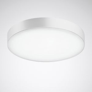 Rundes LED-Anbau-Downlight, Aufbauhöhe 65 mm. Geeignet zur Anwendung in HACCP, IFS und/oder BRC Global Standard Food zertifizierten Unternehmen. Für die Wand- und Deckenmontage. Abdeckscheibe aus transluzentem PMMA. Mit lambertscher Lichtstärkeverteilung. Ausstrahlungswinkel 104°. Harmonische Lichtwirkung durch gleichmäßig ausgeleuchteten Lichtaustritt. Leuchtenlichtstrom und Lichtfarbe fest eingestellt. Bemessungslichtstrom 3900 lm, Bemessungsleistung 30 W, maximale Leuchten-Lichtausbeute 130 lm/W. Lichtfarbe neutralweiß, ähnlichste Farbtemperatur (CCT) 4000 K, allgemeiner Farbwiedergabeindex (CRI) Ra > 80. Farborttoleranz (initial MacAdam) = 3 SDCM. Mittlere Bemessungslebensdauer L80 (tq 25 °C) = 70.000 h. Die Lichtquelle ist entsprechend der Ökodesign-Anforderungen (VO (EU) 2019/2020) austauschbar. Flimmern: Pst LM = 1,0 bei Volllast. Stroboskop-Effekt: SVM = 0,4 bei Volllast. Leuchtenkörper aus Aluminiumdruckguss. Oberfläche weiß beschichtet (ähnlich RAL 9016). Außenmaße Deckenring Ø 445 mm, Leuchtenhöhe 65 mm. Schutzklasse (EN 61140): I, Schutzart (DIN EN 60529): IP40, Stoßfestigkeitsgrad nach IEC 62262: IK06, Prüftemperatur Glühdrahttest gemäß IEC 60695-2-11: 650 °C. Zulässige Umgebungstemperatur (ta): -20 °C bis 25 °C. Gewicht: 4,6 kg. Mit Anschlussklemme bis 2,5 mm, Zugentlastung und Netzweiterleitung. Mit elektronischem Betriebsgerät, schaltbar Das Betriebsgerät ist entsprechend der Ökodesign-Anforderungen (VO (EU) 2019/2020) austauschbar. Das Produkt erfüllt die grundlegenden Anforderungen der anwendbaren EU-Richtlinien und des Produktsicherheitsgesetzes und trägt die CE-Kennzeichnung. Zusätzlich ist die Leuchte durch eine unabhängige Prüfstelle ENEC-zertifiziert. Leuchte 10 Jahre, Ersatzteile (LED-Modul, Betriebsgerät, optisches System) 15 Jahre nach Rechnungsdatum unter Vorbehalt vertretbarer Änderungen, die dem Fortschritt dienen, verfügbar.