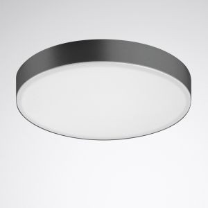 Rundes LED-Anbau-Downlight, Aufbauhöhe 65 mm. Geeignet zur Anwendung in HACCP, IFS und/oder BRC Global Standard Food zertifizierten Unternehmen. Für die Wand- und Deckenmontage. Mit Primärreflektor und hocheffizienter Mikroprismatik CDP. Mit symmetrisch begrenzt breit strahlender Lichtstärkeverteilung. Ausstrahlungswinkel 91°. Blendungsbewertung nach UGR-Einstufung (EN 12464-1) < 19. UGR-Einstufung nach Tabellenverfahren (EN 12464-1) mit Reflexionswerten 80/60/30. Harmonische Lichtwirkung durch gleichmäßig ausgeleuchteten Lichtaustritt. Leuchtenlichtstrom und Lichtfarbe fest eingestellt. Bemessungslichtstrom 3600 lm, Bemessungsleistung 29 W, maximale Leuchten-Lichtausbeute 124 lm/W. Lichtfarbe warmweiß, ähnlichste Farbtemperatur (CCT) 3000 K, allgemeiner Farbwiedergabeindex (CRI) Ra > 80. Farborttoleranz (initial MacAdam) = 3 SDCM. Mittlere Bemessungslebensdauer L80 (tq 25 °C) = 70.000 h. Die Lichtquelle ist entsprechend der Ökodesign-Anforderungen (VO (EU) 2019/2020) austauschbar. Flimmern: Pst LM = 1,0 bei Volllast. Stroboskop-Effekt: SVM = 0,4 bei Volllast. Leuchtenkörper aus Aluminiumdruckguss. Oberfläche anthrazit beschichtet (ähnlich DB 703). Außenmaße Deckenring Ø 445 mm, Leuchtenhöhe 65 mm. Schutzklasse (EN 61140): I, Schutzart (DIN EN 60529): IP40, Stoßfestigkeitsgrad nach IEC 62262: IK06, Prüftemperatur Glühdrahttest gemäß IEC 60695-2-11: 650 °C. Zulässige Umgebungstemperatur (ta): -20 °C bis 25 °C. Gewicht: 4,6 kg. Mit Anschlussklemme bis 2,5 mm, Zugentlastung und Netzweiterleitung. Mit elektronischem Betriebsgerät, digital dimmbar (DALI). Betriebsgerät gemäß DALI-2-Standard (EN 62386). Leuchte mittels Tastfunktion über DALI-Steuerklemmen schalt- und dimmbar (Touch DIM). Das Betriebsgerät ist entsprechend der Ökodesign-Anforderungen (VO (EU) 2019/2020) austauschbar. Die Leuchte ist Monitoring ready (MOR) und liefert Leuchtendaten zur Überwachung oder vorausschauenden Wartung. Sie ist damit kompatibel zu den TRILUX Monitoring Services. Das Produkt erfüllt die grundlegenden Anforderungen der anwendbaren EU-Richtlinien und des Produktsicherheitsgesetzes und trägt die CE-Kennzeichnung. Zusätzlich ist die Leuchte durch eine unabhängige Prüfstelle ENEC-zertifiziert. Leuchte 10 Jahre, Ersatzteile (LED-Modul, Betriebsgerät, optisches System) 15 Jahre nach Rechnungsdatum unter Vorbehalt vertretbarer Änderungen, die dem Fortschritt dienen, verfügbar.