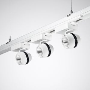 Geräteträger für E-Line Lichtbandsystem 7651. 3-Phasen-Stromschienenmodul zur Aufnahme von Strahlermodulen mit Euroadapter. Zur Kombination mit Tragprofilen E-Line 07650... 1475 mmm, 2950 mm oder 4425 mm (Trennstecker-Abstand 1500 mm) in IP20 oder IP64. Kompatibel mit Tragprofilen E-Line T5N/LED 07650.... Als Einzel- oder Lichtbandleuchte für die direkte Deckenmontage sowie abgehängte Montage mittels separat zu bestellendem Zubehör. Elektrischer Anschluss erfolgt selbsttätig bei Einsetzen des Geräteträgers in das Tragprofil. Die Phasenwahl erfolgt mittels Steckklemme. Befestigung am Tragprofil durch werkzeuglos zu betätigende Edelstahl-Rastverschlüsse. Die sachgerechte Montage des Geräteträgers mit dem Tragprofil wird durch ein Einrastgeräusch bestätigt. Die transparenten Montageelemente aus UV-stabilisiertem Polycarbonat können nach einer erfolgreichen Montage entfernt werden und gewährleisten dadurch einen Diebstahl- und Demontageschutz. Für Strahlermodule digital dimmbar (DALI). System Nordic. Farbe weiß (ähnlich RAL 9016). Länge 1474 mm, nutzbare Schienenlänge 800 mm. Erfüllt die DIN 10500 und ist für die Anwendungen in HACCP, IFS Version 6 und/oder BRC Global Standard Food Version 7 zertifizierten Unternehmen der Lebensmittel- und Getränkeindustrie geeignet. Bei der Umsetzung DALI-dimmbarer Anwendungen muss auf Systemgleichheit von Strahler- und Stromschiene geachtet werden. Die im Bild dargestellten Strahler sind nicht im Lieferumfang enthalten. E-Line 3-Phasen-Stromschienenmodule sind für eine Kombination mit Flex 370 oder Fix 37 Universal Tragprofilen (07650... Flex 370 oder 07650...37) nicht geeignet.