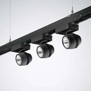 Geräteträger für E-Line Lichtbandsystem 7651. 3-Phasen-Stromschienenmodul zur Aufnahme von Strahlermodulen mit Euroadapter. Zur Kombination mit Tragprofilen E-Line 07650... 1475 mmm, 2950 mm oder 4425 mm (Trennstecker-Abstand 1500 mm) in IP20 oder IP64. Kompatibel mit Tragprofilen E-Line T5N/LED 07650.... Als Einzel- oder Lichtbandleuchte für die direkte Deckenmontage sowie abgehängte Montage mittels separat zu bestellendem Zubehör. Elektrischer Anschluss erfolgt selbsttätig bei Einsetzen des Geräteträgers in das Tragprofil. Die Phasenwahl erfolgt mittels Steckklemme. Befestigung am Tragprofil durch werkzeuglos zu betätigende Edelstahl-Rastverschlüsse. Die sachgerechte Montage des Geräteträgers mit dem Tragprofil wird durch ein Einrastgeräusch bestätigt. Die transparenten Montageelemente aus UV-stabilisiertem Polycarbonat können nach einer erfolgreichen Montage entfernt werden und gewährleisten dadurch einen Diebstahl- und Demontageschutz. Für Strahlermodule digital dimmbar (DALI). System Nordic. Farbe schwarz (ähnlich RAL 9005). Länge 1474 mm, nutzbare Schienenlänge 800 mm. Erfüllt die DIN 10500 und ist für die Anwendungen in HACCP, IFS Version 6 und/oder BRC Global Standard Food Version 7 zertifizierten Unternehmen der Lebensmittel- und Getränkeindustrie geeignet. Bei der Umsetzung DALI-dimmbarer Anwendungen muss auf Systemgleichheit von Strahler- und Stromschiene geachtet werden. Die im Bild dargestellten Strahler sind nicht im Lieferumfang enthalten. E-Line 3-Phasen-Stromschienenmodule sind für eine Kombination mit Flex 370 oder Fix 37 Universal Tragprofilen (07650... Flex 370 oder 07650...37) nicht geeignet.
