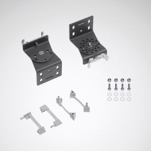 Schwenkbare Montagebügel zur Wand- oder Deckenmontage von LED-Feuchtraumleuchten.1 Satz = 2 Stück. In Kombination mit Leuchten nachfolgender Baureihen zu verwenden: AragonF, DeveoF, OleveonF. Für Feuchträume und gebäudenahe Außenbereiche geeignet. Schwenkbereich: 180°. Mit begrenzter Oberflächentemperatur, für den Einsatz in feuergefährdeten Räumen gemäß DIN EN 60598-2-24 geeignet.