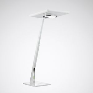 Innovative Tischleuchte mit direktem Lichtanteil für individuelle Arbeitsplatzausleuchtung und indirektem Lichtanteil für allgemeine Raumausleuchtung. Mit integriertem Lichtmanagement zur synchronen tages- und jahreszeitabhängigen Steuerung der Lichtfarbe (Circadian-Steuerung) beider Lichtaustrittsebenen. Die Bedienung der Beleuchtungsfunktionen erfolgt manuell durch 3 Bedienelemente sowie mittels Smartphone-App. Mit HF-Präsenzsensor, HCL-Steuerung und Smart-Single-Ausstattung. Die Leuchte verfügt über einen integrierten Tageslicht- und HF-Präsenzsensor mit Bewegungsrichtungserkennung. Mit integriertem Lichtmanagement zur synchronen tages- und jahreszeitabhängigen Steuerung der Lichtfarbe (Circadian-Steuerung) beider Lichtaustrittsebenen. Die Kommunikation zwischen Leuchte und Smartphone erfolgt mittels Bluetooth Low Energy v 5.0. Besonders geeignet für die Ausstattung moderner Büroumgebungen, speziell in Open Space Anwendungen und offenen Kommunikationszonen als Tischleuchte für alle Arten von festen und höhenverstellbaren Schreib-, Besprechungs- und Arbeitstischen. Für die anforderungsorientierte, den Arbeitsschutzbestimmungen entsprechende Beleuchtung auch im Bereich der Home Office Anwendungen. Auch geeignet für Arbeitsbereiche mit geringer Tageslichtversorgung. Triple Glare Control System (TGCS®) für einen blendungsreduzierten, symmetrisch strahlenden Indirektanteil mit begrenztem Ausstrahlwinkel. Mit klarer, hochkratzfester Acryl-Abschlußscheibe. Mit symmetrisch begrenzt breit strahlender Lichtstärkeverteilung. Blendungsbewertung nach UGR-Einstufung (EN 12464-1) < 19. Mit Tunable White Technologie zur Steuerung der Lichtfarbe mittels separatem Steuersystem (DT8). Bemessungslichtstrom 5580 lm, Bemessungsleistung 52 W, maximale Leuchten-Lichtausbeute 107 lm/W. Aufteilung des Leuchten-Lichtstroms Indirekt-/Direktanteil 90% / 10 %. Lichtfarbe Tunable White (warmweiß - tageslichtweiß), ähnlichste Farbtemperatur (CCT) Tunable White (2700 K - 6000 K), allgemeiner Farbwiedergabeindex (CRI) Ra > 80. Farborttoleranz (initial MacAdam) = 3 SDCM. Mittlere Bemessungslebensdauer L80 (tq 25 °C) = 50.000 h. Flimmern: Pst LM = 1,0 bei Volllast. Stroboskop-Effekt: SVM = 0,4 bei Volllast. Leuchtenkörper aus Aluminium-Druckguss. Oberfläche weiß beschichtet (ähnlich RAL 9016). Bedienelemente verchromt. Maße des Leuchtenkopfes (L x B x H) 320 mm x 240 mm, Maße Leuchtenfuß 240 mm x 180 mm, Leuchtenhöhe (stufenlos einstellbar) 500 mm - 650 mm. Schutzklasse (EN 61140): II, Schutzart (DIN EN 60529): IP20, Stoßfestigkeitsgrad nach IEC 62262: IK02, Prüftemperatur Glühdrahttest gemäß IEC 60695-2-11: 650 °C. Zulässige Umgebungstemperatur (ta): 25 °C Gewicht: 4,2 kg. Steckernetzteil mit Anschlussleitung (3000 mm). Mit Euro-Anschluss-Stecker (Typ C, EN 50075). Mit elektronischem Betriebsgerät, dimmbar (integriert) Das Betriebsgerät ist entsprechend der Ökodesign-Anforderungen (VO (EU) 2019/2020) austauschbar. Mit Ladefläche zum leitungslosen, induktiven aufladen von geeigneten mobilen Kommunikationsgeräten. Ladestrom bis 1500 mA. Das Produkt erfüllt die grundlegenden Anforderungen der anwendbaren EU-Richtlinien und des Produktsicherheitsgesetzes und trägt die CE-Kennzeichnung. Leuchte 10 Jahre, Ersatzteil Betriebsgerät 15 Jahre nach Rechnungsdatum unter Vorbehalt vertretbarer Änderungen, die dem Fortschritt dienen, verfügbar. Ersatzteile LED-Modul und optisches System sind bauartbedingt nicht verfügbar.