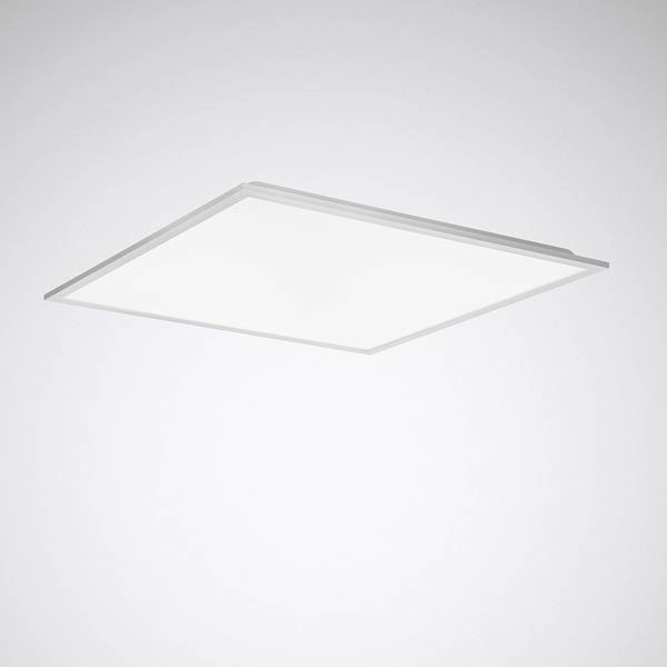 LED-Einbauleuchte mit transluzenter PMMA-Abdeckscheibe. Ausführung M84 (625 mm x 625 mm). Die Leuchte ist DALI-dimmbar und kann in das Lichtmanagementsystem TRILUX LiveLink eingebunden werden. Für Systemdecken mit sichtbaren Tragschienen. Abdeckscheibe aus transluzentem PMMA. Mit symmetrisch begrenzt breit strahlender Lichtstärkeverteilung. Blendungsbewertung nach UGR-Einstufung (EN 12464-1) < 19. Bildschirmgerecht gemäß EN 12464-1 durch begrenzte Leuchtdichten L = 3000 cd/m2 für Ausstrahlungswinkel oberhalb 65° rundum. Harmonische Lichtwirkung durch gleichmäßig ausgeleuchteten Lichtaustritt. Leuchtenlichtstrom und Lichtfarbe fest eingestellt. Bemessungslichtstrom 3300 lm, Bemessungsleistung 33,00 W, Lichtfarbe warmweiß, ähnlichste Farbtemperatur (CCT) 3000 K, allgemeiner Farbwiedergabeindex (CRI) Ra > 80. Farborttoleranz (initial MacAdam) = 5 SDCM. Mittlere Bemessungslebensdauer L65(tq 25 °C) = 50.000 h. Leuchtenkörper aus Aluminium. Oberfläche weiß beschichtet (RAL 9016). Schutzklasse (EN 61140): I, Schutzart (DIN EN 60529): IP20, Schutzart raumseitig: IP40, Stoßfestigkeitsgrad nach IEC 62262: IK02, Prüftemperatur Glühdrahttest gemäß IEC 60695-2-11: 650 °C. Gewicht: 2.5 kg. Mit elektronischem Betriebsgerät, digital dimmbar (DALI). Leuchte mittels Tastfunktion über DALI-Steuerklemmen schalt- und dimmbar (Touch DIM). Das Betriebsgerät ist entsprechend der Ökodesign-Anforderungen (VO (EU) 2019/2020) austauschbar. Das Produkt erfüllt die grundlegenden Anforderungen der anwendbaren EU-Richtlinien und des Produktsicherheitsgesetzes und trägt die CE-Kennzeichnung. Zusätzlich ist die Leuchte durch eine unabhängige Prüfstelle ENEC-zertifiziert.