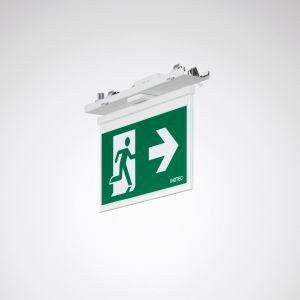Geräteträger für E-Line 7651 Lichtbandsystem mit LED-Rettungszeichen-Scheibenleuchte zur Fluchtwegkennzeichnung. Die Scheibenleuchte ist mit einem separat zu bestellenden Piktogramm zur Darstellung der Fluchtrichtung auszustatten. Die Geräteträger mit Notlichtbaustein sind mit Tragprofilen mit Durchgangsverdrahtung (Typ 7LV + 7LV) zu kombinieren. Geeignet zur Anwendung in HACCP, IFS und/oder BRC Global Standard Food zertifizierten Unternehmen. Leuchtenlichtstrom und Lichtfarbe fest eingestellt. Mit einem LED-Modul 18 x 0,1 W für eine Erkennungsreichweite von bis zu 30 m. maximale Leuchten-Lichtausbeute lm/W. Lichtfarbe tageslichtweiß, ähnlichste Farbtemperatur (CCT) 5600 K, allgemeiner Farbwiedergabeindex (CRI) Ra > 70. Farborttoleranz (initial MacAdam) = 3 SDCM. Die Lichtquelle ist entsprechend der Ökodesign-Anforderungen (VO (EU) 2019/2020) austauschbar. Flimmern: Pst LM = 1,0 bei Volllast. Stroboskop-Effekt: SVM = 0,4 bei Volllast. Gehäuse Scheibenleuchte aus weißem UV-beständigem Polycarbonat. Oberfläche weiß beschichtet (ähnlich RAL 9016). Länge des Geräteträgers 368 mm. . Gewicht: 0,9 kg. Selbsttätige elektrische Verbindung durch Steckkontakte mit Phasenwahl. Die Phasenwahl erfolgt werkzeuglos. Mit elektronischem Betriebsgerät, schaltbar. Das Betriebsgerät ist entsprechend der Ökodesign-Anforderungen (VO (EU) 2019/2020) austauschbar. Zur Verwendung in Kombination mit einer Zentralbatterieanlage Typ INOTEC JOKER (230V / 50 Hz). Die Leuchte ist Monitoring ready (MOR) und liefert Leuchtendaten zur Überwachung oder vorausschauenden Wartung. Sie ist damit kompatibel zu den TRILUX Monitoring Services. Das Produkt erfüllt die grundlegenden Anforderungen der anwendbaren EU-Richtlinien und des Produktsicherheitsgesetzes und trägt die CE-Kennzeichnung. Leuchte 10 Jahre, Ersatzteile (LED-Modul, Betriebsgerät, optisches System) 15 Jahre nach Rechnungsdatum unter Vorbehalt vertretbarer Änderungen, die dem Fortschritt dienen, verfügbar.