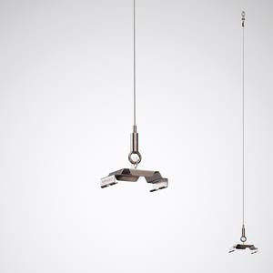 Seilabhängung mit Befestigungsklammer. Für Abhängelängen bis 1500 mm. Bestehend aus 1 Stahlseil, verzinkt, ø 1,5 mm und Aufhängeklammer aus Edelstahl. In Kombination mit Tragprofilen E-Line Pro 078... anzuwenden.