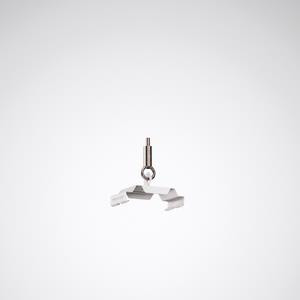 Aufhängeklammer für Montage an Stahlseil. Aus Edelstahl, rostfrei. In Kombination mit Tragprofilen E-Line Pro 078... anzuwenden. Oberfläche beschichtet, Farbe weiß (ähnlich RAL 9016).