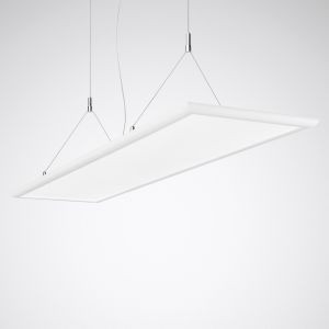 LED-Hängeleuchte mit transluzenter PMMA-Abdeckscheibe. Hängeleuchte für Einzelleuchtenanwendung. Y-Seilabhängung für Abhängelängen bis 1780 mm. Y-Seilabhängung und elektrische Anschlussleitung im Lieferumfang enthalten. Mit symmetrisch begrenzt breit strahlender Lichtstärkeverteilung. Blendungsbewertung nach UGR-Einstufung (EN 12464-1) < 19. Bildschirmgerecht gemäß EN 12464-1 durch begrenzte Leuchtdichten L = 3000 cd/m2 für Ausstrahlungswinkel oberhalb 65° rundum. Aufteilung der Gesamt-Lichtstärkeverteilung (direkt/indirekt): 67,35% / 32,65 %. Leuchtenlichtstrom und Lichtfarbe in 4 Stufen individuell einstellbar (Multilumen, Multicolour). Bemessungslichtstrom 4350 lm - 6000 lm, Bemessungsleistung 36 W - 46 W, maximale Leuchten-Lichtausbeute 131 lm/W. Lichtfarbe warmweiß oder neutralweiß, ähnlichste Farbtemperatur (CCT) 3000 K oder 4000 K, allgemeiner Farbwiedergabeindex (CRI) Ra > 80. Farborttoleranz (initial MacAdam) = 3 SDCM. Mittlere Bemessungslebensdauer L70 (tq 25 °C) = 50.000 h. Leuchtenkörper aus Aluminium-Strangpressprofil. Oberfläche weiß beschichtet (ähnlich RAL 9016). Maße (L x B): 1500 mm x 300 mm, Leuchtenhöhe 20 mm. Schutzklasse (EN 61140): II, Schutzart (DIN EN 60529): IP20, Stoßfestigkeitsgrad nach IEC 62262: IK02, Prüftemperatur Glühdrahttest gemäß IEC 60695-2-11: 650 °C. Zulässige Umgebungstemperatur (ta): 25 °C . Gewicht: 5,8 kg. Mit elektronischem Betriebsgerät, schaltbar. Das Betriebsgerät ist entsprechend der Ökodesign-Anforderungen (VO (EU) 2019/2020) austauschbar. Das Produkt erfüllt die grundlegenden Anforderungen der anwendbaren EU-Richtlinien und des Produktsicherheitsgesetzes und trägt die CE-Kennzeichnung. Zusätzlich ist die Leuchte durch eine unabhängige Prüfstelle ENEC-zertifiziert.