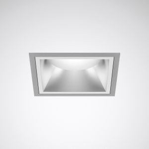 Kompaktes LED-Downlight in quadratischer Bauform. Einbau-Downlight mit Rand für gesägte Deckenöffnungen. Werkzeugloser Deckeneinbau durch Schnellmontagespanner. Quadratisches Deckenausschnittmaß 150 mm. Einbautiefe >= 130 mm, Leuchtenhöhe 133 mm. Mit matt glänzend bedampftem Kunststoffreflektor. Farbe des Deckeneinbaurahmens: silberfarbig. Symmetrische Lichtverteilungscharakteristik und Halbwertswinkel: 60° Very Wide Flood. Lichtlenkung durch Collimator-/Linsentechnologie. Bildschirmgerecht (BAP) gemäß EN 12464-1 durch begrenzte Leuchtdichten L = 3000 cd/m2 oberhalb 65° Begrenzung der Direktblendung gemäß UGR 19. Mit einem LED-Modul. Leuchtenlichtstrom 1.400 lm, Anschlussleistung 11,0 W, Leuchten-Lichtausbeute 127 lm/W. Lichtfarbe Neutralweiß, ähnlichste Farbtemperatur (CCT) 4000 K, allgemeiner Farbwiedergabeindex (CRI) Ra = 80. Farborttoleranz (initial MacAdam) = 3 SDCM entspricht einer sehr hohen Farbgleichheit der LED in der Anwendung. Mittlere Lebensdauer L90(tq 25 °C) = 50.000 h, mittlere Lebensdauer L80(tq 25 °C) = 100.000 h. Die Lichtquelle ist entsprechend der Ökodesign-Anforderungen (VO (EU) 2019/2020) austauschbar. Zulässige Umgebungstemperatur (ta): -20°C - +25°C. Gehäuse und Kühlkörper aus Aluminium-Druckguss. Schutzklasse (EN 61140): II, Schutzart (DIN EN 60529): IP20. Schutzart raumseitig: IP54. Stoßfestigkeitsgrad nach IEC 62262: IK06, Prüftemperatur Glühdrahttest gemäß IEC 60695-2-11: 850 °C. Mit 3-poliger Anschlussklemme bis 2,5 mm² für Netzanschluss sowie separater 3-poliger Netzweiterleitungsbox. Der netzseitige Anschluss des Vorschaltgerätes erfolgt mittels Anschlussklemme. Mit elektronischem Betriebsgerät, schaltbar. Das Betriebsgerät ist entsprechend der Ökodesign-Anforderungen (VO (EU) 2019/2020) austauschbar. Die Leuchte ist silikonfrei. Das Produkt erfüllt die grundlegenden Anforderungen der anwendbaren EU-Richtlinien und des Produktsicherheitsgesetzes und trägt die CE-Kennzeichnung. Zusätzlich ist die Leuchte durch eine unabhängige Prüfstelle ENEC-zertifiziert. Für Arbeitsplätze mit Bildschirmgeräten. Büros, Flure, Foyers, Konferenzräume, Verkaufsflächen, Wartezonen. Mit Trilux-Nachkaufversprechen: Die Leuchte ist 10 Jahre, Ersatzteile (LED-Modul, Betriebsgerät und optisches System) 15 Jahre nach Rechnungsdatum verfügbar. Vertretbare Änderungen, die dem Fortschritt dienen, sind dabei vorbehalten.