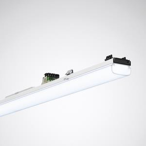 Geräteträger für Lichtbandsystem 78 E-Line Pro. In Verbindung mit Tragprofilen 078... für Einzel- oder Lichtbandanwendungen, frei positionierbar. Ausführung zur Verwendung in Anwendungsbereichen mit hohen technischen Anforderungen an das Lichtband bei gleichzeitiger wirtschaftlicher Effizienz. Leuchte mit begrenzter Oberflächentemperatur gemäß DIN EN 60598-2-24 für den Einsatz in feuergefährdeten Betriebsstätten geeignet (D-Kennung). Erfüllt DIN 10500. Die Leuchten sind für die Anwendungen in HACCP, IFS und/oder BRC Global Standard Food zertifizierten Unternehmen der Lebensmittel- und Getränkeindustrie geeignet. Die Schutzart IP50 der Anwendung wird in Kombination mit separat zu bestellenden Zubehören erreicht (078IP50 Ks..., 078IP50 SB..., 078IP50 SC..., ). Befestigung am Tragprofil durch werkzeuglos zu betätigende Edelstahl-Rastverschlüsse. Die sachgerechte Montage des Geräteträgers mit dem Tragprofil wird durch ein Einrastgeräusch bestätigt. Geräteträgerkörper und Tragprofil schließen bündig ab. Charakteristik der Lichtstärkeverteilung: lambertian. Halbwertswinkel C0 = 121°, C90 = 102°, Hauptabstrahlwinkel C0 = 0°.Das optische System besteht aus einer transluzenten PMMA-Abdeckung mit hohem Transmissionsgrad. Mit leichtem Indirektanteil zur Oberflächenaufhellung (13%). Insektendichter Lampenraum aufgrund Schutzart IP50. Empfohlene Installationshöhe: 2,4 - 4 m. Mit zwei LED Modulen (2 x 96 LED). Lichterzeugung frei von infraroten (IR) und ultravioletten (UV) Anteilen. Der Leuchtenlichtstrom des Geräteträgers wird im Fertigungsprozess nach Kundenwunsch elektronisch parametriert. Parametrierter Bemessungslichtstrom des Geräteträgers: 8.400 lm. Bemessungsleistung 56 W, Leuchten-Lichtausbeute 150 lm/W. Allgemeiner Farbwiedergabeindex (CRI) > 80, ähnlichste Farbtemperatur (CCT) 6500 K. Lichtfarbe Tageslichtweiß, Farborttoleranz (initial MacAdam) = 3 SDCM. Mittlere Bemessungslebensdauer L80(tq 35 °C) = 50.000 h. Geräteträger aus Stahlblech, weiß beschichtet. Länge des Geräteträgers 1.474 mm. Insektendichter Lampenraum aufgrund Schutzart IP50. Zulässige Umgebungstemperatur (ta) 35 °C. Schutzart (DIN EN 60529):IP50 Schutzklasse (EN 61140): I. Stoßfestigkeitsgrad nach IEC 62262: IK03, Prüftemperatur Glühdrahttest gemäß IEC 60695-2-11: 650 °C. Selbsttätige, werkzeuglose Verbindung mit Stromführungsprofil mittels Abgriff. Der Abgriff erleichtert die sichere und schnelle Montage, ist mechanisch sowie farblich codiert und zeigt die Montagerichtung durch einen Pfeil-Kennung an. Die Phasenwahl erfolgt werkzeuglos durch Push-Schiebekontakte. Der Abgriff ist zur Ausrichtung asymmetrischer Lichtverteilungen drehbar. Mittels separat zu bestellenden Steckern kann der Abgriff für individuelle Anwendungen erweitert werden. Die Stromtragfähigkeit des Abgriffs beträgt 3 A und übertrifft den geforderten Normwert um über 30%. Mit elektronischem Betriebsgerät, digital dimmbar (DALI). Betriebsgerät gemäß DALI-2-Standard (EN 62386). Die Leuchte ist Monitoring ready (MOR), liefert Leuchtendaten zur Überwachung oder vorausschauenden Wartung und ist damit kompatibel zu den TRILUX Digital Services (Energy Monitoring und Light Monitoring). Das Produkt erfüllt die grundlegenden Anforderungen der anwendbaren EU-Richtlinien und des Produktsicherheitsgesetzes und trägt die CE-Kennzeichnung. Für den einfachen und schnellen Planungs- und Konfigurationsprozess der Anwendung steht ein spezielles Online-Tool zur Verfügung. Das ressourcenoptimierte Verpackungskonzept der Lichtbandkomponenten erleichtert die Montage und schont die Umwelt. Zusätzlich ist die Leuchte durch eine u
