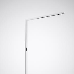 Standleuchte mit direktem und indirektem Lichtstromanteil. Die Bedienung erfolgt über ein im Standprofil flächenbündig eingelassenes Bedienfeld. Mit integriertem Bewegungs- und Tageslichtsensor. Nach 15 Minuten ohne Bewegungserkennung wird die Leuchte ausgeschaltet. Der Tageslichtsensor ermöglicht bei Aktivierung ein konstantes Helligkeitsniveau im Umfeld der Leuchte. Der Helligkeits-Referenzwert kann mittels Bedienfeld verändert und abgespeichert werden. Ein Drehschalter ermöglicht die Einstellung und Kombination der Lichtmanagement-Betriebsarten (Bewegungs-Sensor Ein/Aus, Tageslichtsensor Ein/Aus). Die Lieferung der Leuchte erfolgt zum Schutz der Einzelkomponenten in 3 Packstücken. Mit symmetrisch begrenzt breit strahlender Lichtstärkeverteilung. Blendungsbewertung nach UGR-Einstufung (EN 12464-1) < 19. Leuchtenlichtstrom und Lichtfarbe fest eingestellt. Bemessungslichtstrom 12400 lm, Bemessungsleistung 80 W, maximale Leuchten-Lichtausbeute 155 lm/W. Lichtfarbe neutralweiß, ähnlichste Farbtemperatur (CCT) 4000 K, allgemeiner Farbwiedergabeindex (CRI) Ra > 80. Farborttoleranz (initial MacAdam) = 3 SDCM. Mittlere Bemessungslebensdauer L80 (tq 25 °C) = 50.000 h. Die Lichtquelle ist entsprechend der Ökodesign-Anforderungen (VO (EU) 2019/2020) austauschbar. Flimmern: Pst LM = 1,0 bei Volllast. Stroboskop-Effekt: SVM = 0,4 bei Volllast. Linearer, filigraner Leuchtenkörper. Bestehend aus Leuchtenkopf, Standprofil und Standfuß. Leuchtenkörper aus Aluminium. Standfuß aus Stahl. Feinstruktur pulverbeschichtet.. Oberfläche weiß beschichtet (ähnlich RAL 9016). Leuchtenkopf und Standprofil in rechteckiger Ausführung. U-förmiger Standfuß. Zulässige Umgebungstemperatur (ta): 25 °C Gewicht: 12,0 kg. Anschluss mittels flexibler Anschlussleitung. Länge ca. 3000 mm. Schutzkontaktstecker kompatibel mit Steckdosen vom Typ E und Typ F. Steckerausführung: abgewinkelt. Mit elektronischem Betriebsgerät, dimmbar (integriert). Das Betriebsgerät ist entsprechend der Ökodesign-Anforderungen (VO (EU) 2019/2020) austauschbar. Das Produkt erfüllt die grundlegenden Anforderungen der anwendbaren EU-Richtlinien und des Produktsicherheitsgesetzes und trägt die CE-Kennzeichnung.