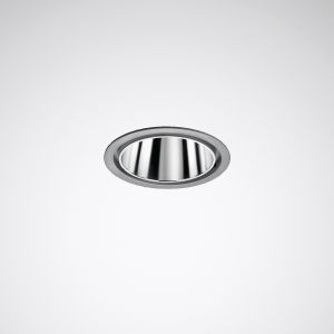 Kompaktes LED-Downlight in runder Bauform. Geeignet zur Anwendung in HACCP, IFS und/oder BRC Global Standard Food zertifizierten Unternehmen. Einbau-Downlight für gesägte Deckenöffnungen, Einbau in gegossene Betondecken mittels Zubehör. Werkzeugloser Deckeneinbau durch Schnellmontagefedern. Optisch und technisch abgestimmte Sanierungsplatten für Deckenöffnungen mit größeren Deckenausschnittmaßen sind als Zubehör in verschiedenen Ausführungen verfügbar. Deckenausschnitt Ø 140 mm, Einbautiefe 100 mm. In Verbindung mit geschlossener Dekorabdeckung wird Schutzart IP54 raumseitig erreicht. Aluminiumreflektor hochglänzend eloxiert. Mit symmetrisch extra breit strahlender Lichtstärkeverteilung. Leuchtenlichtstrom und Lichtfarbe fest eingestellt. Bestückt mit einem LED-Spotmodul. Bemessungslichtstrom 2700 lm, Bemessungsleistung 25 W, maximale Leuchten-Lichtausbeute 108 lm/W. Lichtfarbe neutralweiß, ähnlichste Farbtemperatur (CCT) 4000 K, allgemeiner Farbwiedergabeindex (CRI) Ra > 80. Farborttoleranz (initial MacAdam) = 3 SDCM. Mittlere Bemessungslebensdauer L80 (tq 25 °C) = 70.000 h. Die Lichtquelle ist entsprechend der Ökodesign-Anforderungen (VO (EU) 2019/2020) austauschbar. Flimmern: Pst LM = 1,0 bei Volllast. Stroboskop-Effekt: SVM = 0,4 bei Volllast. Leuchtenkörper aus Aluminiumdruckguss. Oberfläche silbergrau beschichtet (ähnlich RAL 9006). Außenmaße Deckenring Ø 150 mm, Leuchtenhöhe 103 mm. Leuchten- und Kühlkörper bilden eine kompakte Einheit. Schutzklasse (EN 61140): II, Schutzart (DIN EN 60529): IP20, Stoßfestigkeitsgrad nach IEC 62262: IK06, Prüftemperatur Glühdrahttest gemäß IEC 60695-2-11: 650 °C. Zulässige Umgebungstemperatur (ta): -20 °C bis 25 °C. Gewicht: 1,3 kg. Mit elektronischem Betriebsgerät, schaltbar. Das Betriebsgerät ist entsprechend der Ökodesign-Anforderungen (VO (EU) 2019/2020) austauschbar. Mit 3-poliger Anschlussklemme bis 2,5 mm2 für Netzanschluss und Netzweiterleitung. Schaltbar. Das Produkt erfüllt die grundlegenden Anforderungen der anwendbaren EU-Richtlinien und des Produktsicherheitsgesetzes und trägt die CE-Kennzeichnung. Zusätzlich ist die Leuchte durch eine unabhängige Prüfstelle ENEC-zertifiziert. Leuchte 10 Jahre, Ersatzteile (LED-Modul, Betriebsgerät, optisches System) 15 Jahre nach Rechnungsdatum unter Vorbehalt vertretbarer Änderungen, die dem Fortschritt dienen, verfügbar.