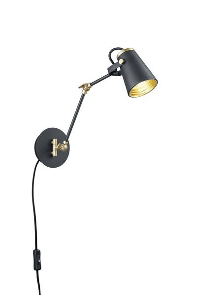 | Kurzbeschreibung | Wandl.EDWARD,1xE14,excl.LM,|Ausl.max.50cm,Ausf.Metall|schwarz-matt/goldfarbig |